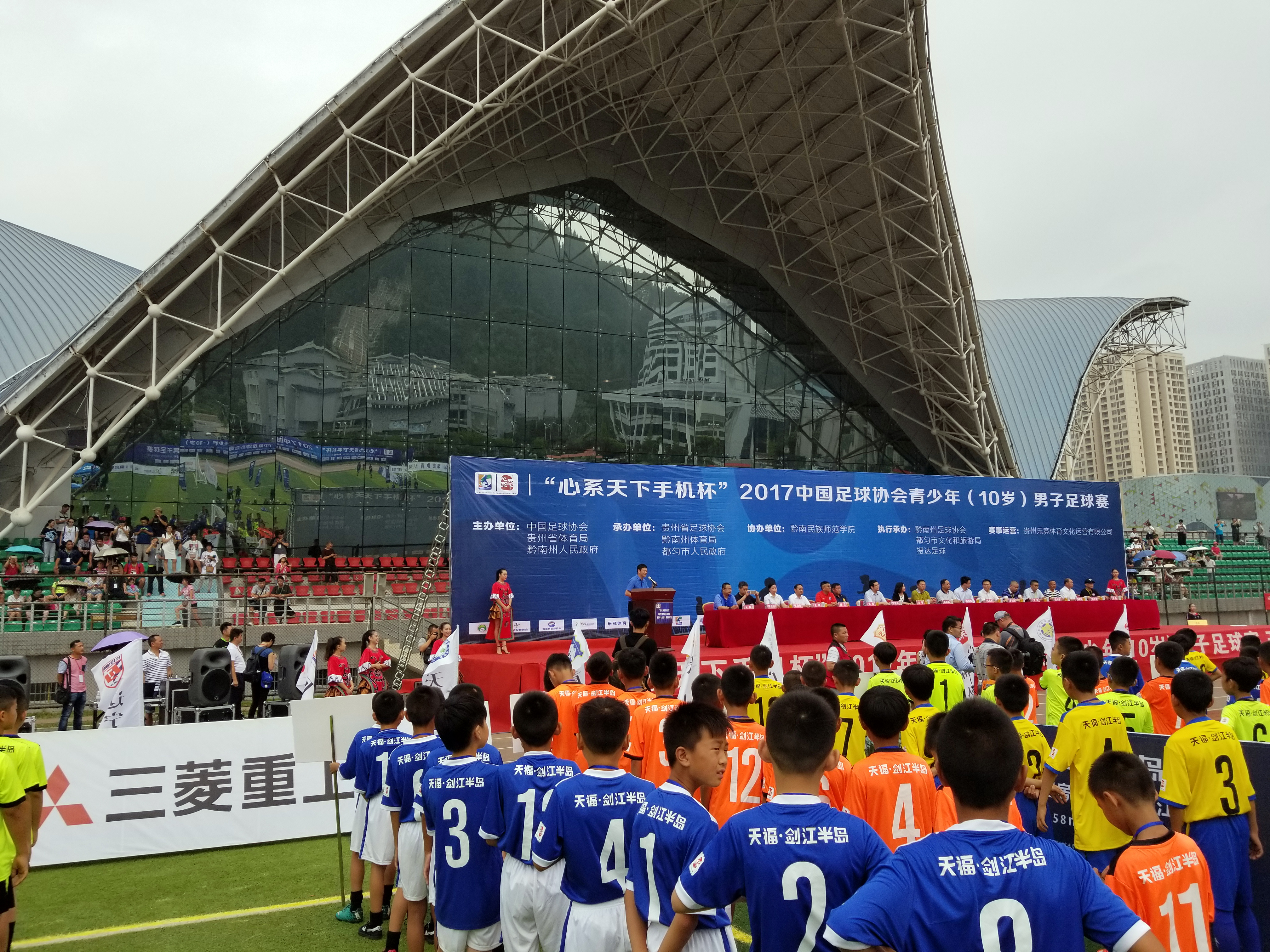 7月31日,“2017年中国足协精英赛10岁男子组”比赛在黔南民族师范学院体育场举行开幕式。开幕式上,中国足协领导、贵州省体育局领导、黔南州政府领导、贵州省足协领导等领导和嘉宾出席。